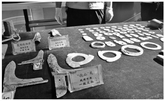 专案组民警根据秦某交代的线索,连夜将王某启抓获,并在某家中缴获珍贵青铜器42件。据王某启供述,这些文物是秦某于2017年2月22日送到其家中的,并告知他这42件青铜器是2月21日夜盗掘所得。但是,秦某对这次盗墓行为及参与成员情况拒不供述。此中肯定暗藏隐情。专案民警分析后,加大追查力度。迫于压力,3月25日,刘某峰投案自首并主动上缴了1月27日盗掘的文物。