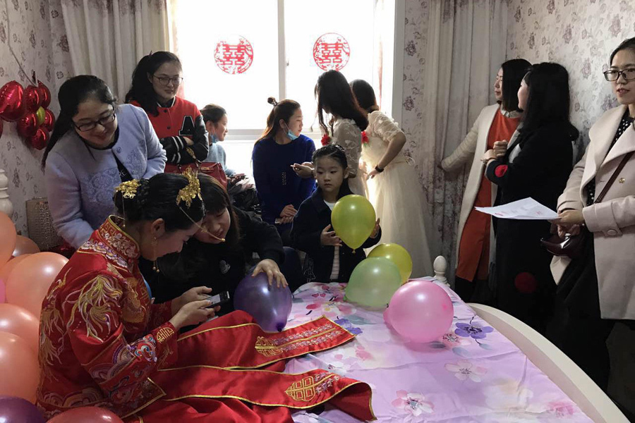 新郎带领队伍在门外忙活,屋里这边也是欢声笑语,听见新娘的手机响了,大家就知道钱已经支付过来了,闺蜜们慌忙过来“审查”金额,生怕新娘心疼新郎假装说收到。