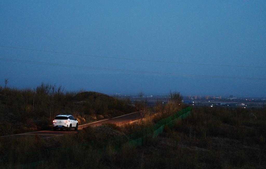 4月10日傍晚,在古浪县八步沙林场,郭玺准备回家。