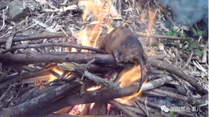 逮住了竹鼠,便用火镰生火,把猎物烤来吃…