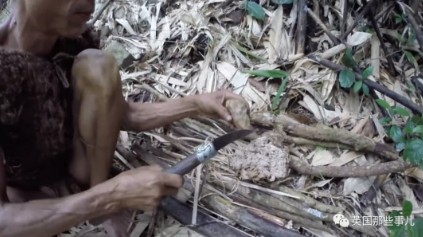 附近的一位村民撞见了这对生活在丛林中的,如同原始人一样的父子,