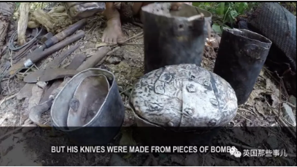 他们还去之前军队交战过的地方捡了一些美军的头盔和炸弹外壳,把它们做成餐具…
