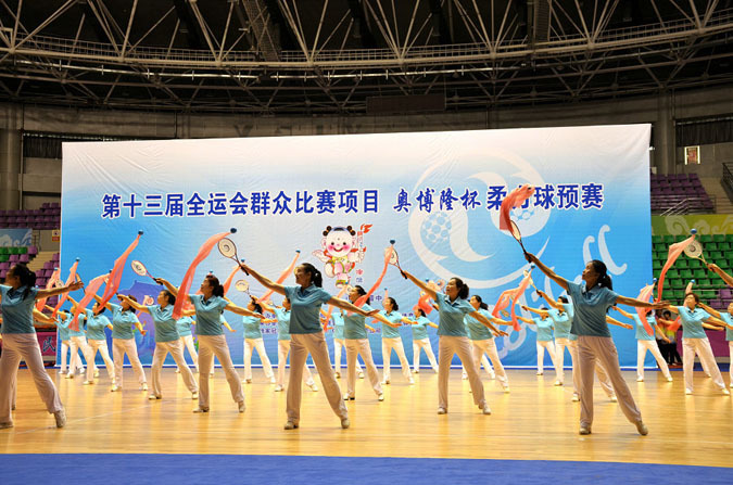 5月14日,晋中市体育馆内聚集了来自全国28支省、直辖市的柔力球运动代表队,他们带着对柔力球运动的热爱和精湛的技艺在晋中展开全运会群众比赛项目柔力球预赛的角逐。