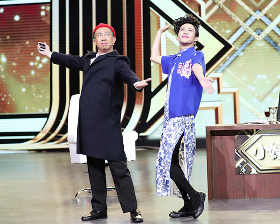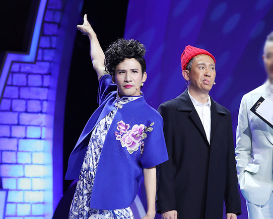 在本周节目中,大张伟、白凯南作为第一组亮相的搭档,双双颠覆画风。大张伟这次则大胆切换到女装模式,扮成了精致女人的模样。舞台上,大张伟身着一袭宝蓝色旗袍,头顶细卷盘发,妆容精致,眼神冷艳气质清丽,刚一亮相就收获全场尖叫,惊艳了在场所有人。他还自称是蔡明的亲妹妹--"张小姨",时不时翘起小指,笑容端庄,举手投足之间妩媚动人,颇有几分优雅女人味道。另外,瘦下来的大老师更显"风情万种",腰肢纤细,身段"妖娆",全身上下每处曲线都写满"诱惑",让常远忍不住赞叹:"大老师转身的那一刻,真是惊艳到我了啊!"