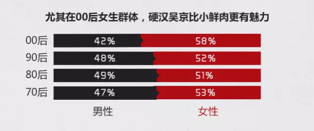 而在“00后”的观众中,女生的占比高达58%,谁说她们都喜欢小鲜肉呢?