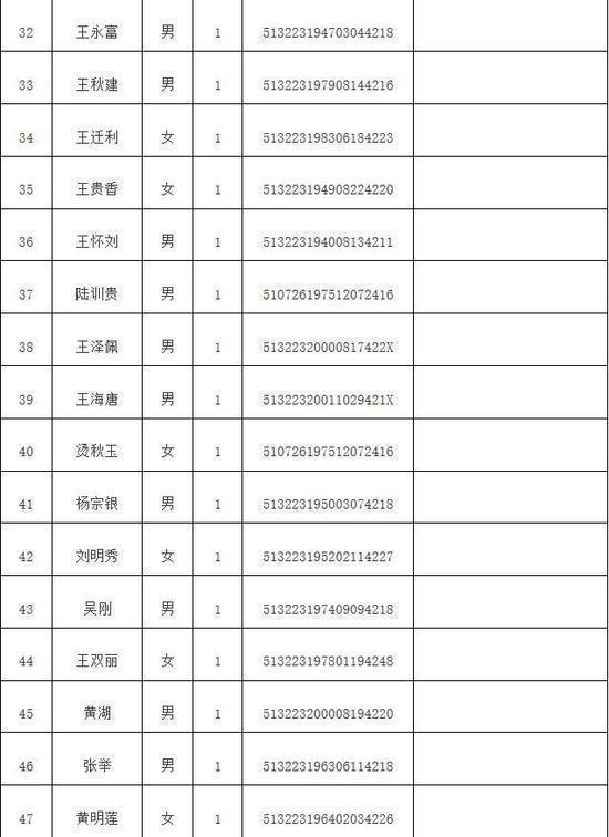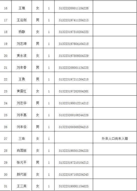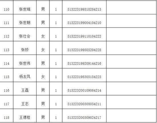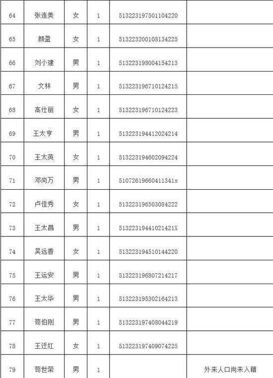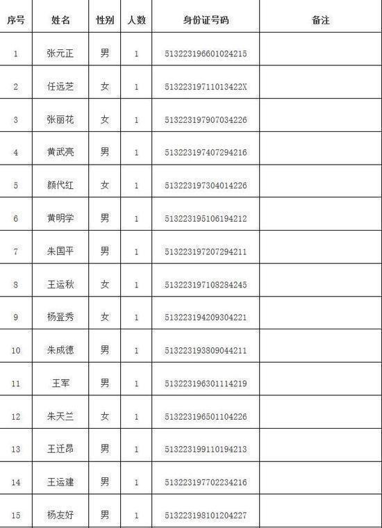 茂县“6.24”叠溪山体滑坡失联人员名单如下: