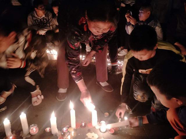 6月24日晚,一场由四川阿坝州茂县人民自发组织的祈福在茂县人民医院附近的政府广场举行。