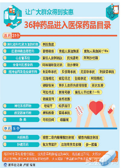 此次价格谈判成功的36种药品,多数仍处于专利保护期中,有31种西药和5种中成药,其中抗肿瘤药占据半壁江山。记者统计发现,这些药品共涉及10余家国外药企,不少药品仅2015年的在华销售额,就高达上亿甚至十几亿元。